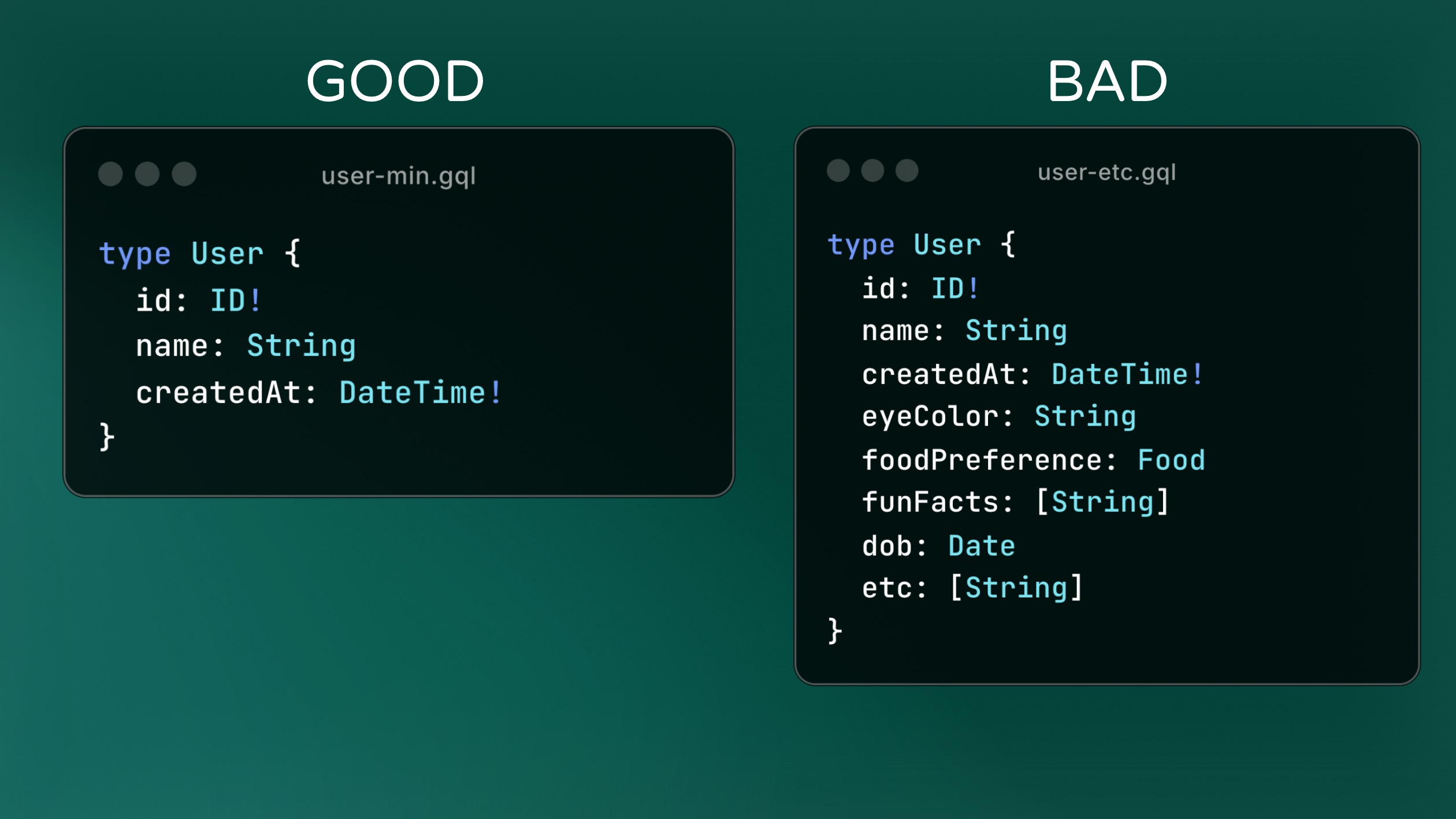 Also don’t place Binary Files or other large response fields in the Schema. Leverage CDNs and other purpose built solutions meant for dealing with these files.