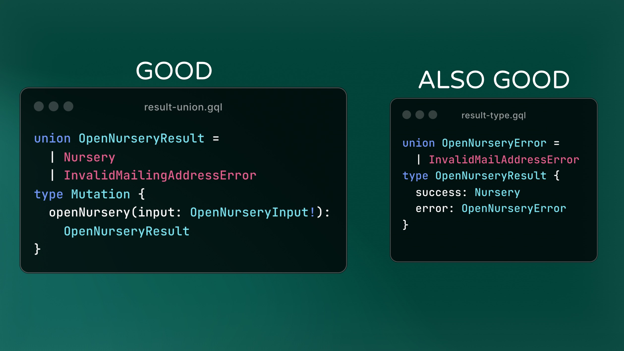 Over time, we've developed some proven design philosophies and patterns for easier schema migrations, exposing errors, and avoiding ambiguous or misleading type names.